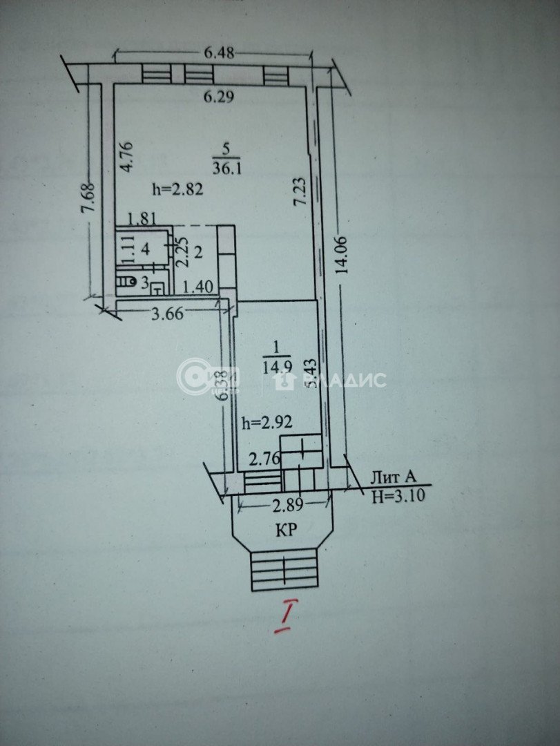 коммерческая, 57.4 м2, эт. 1 из 5