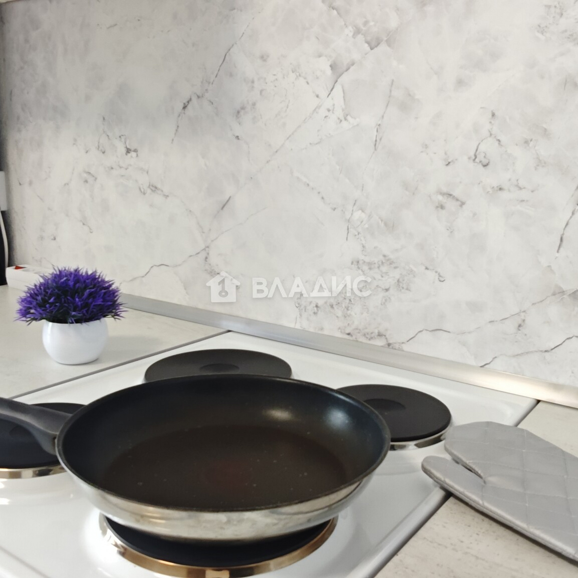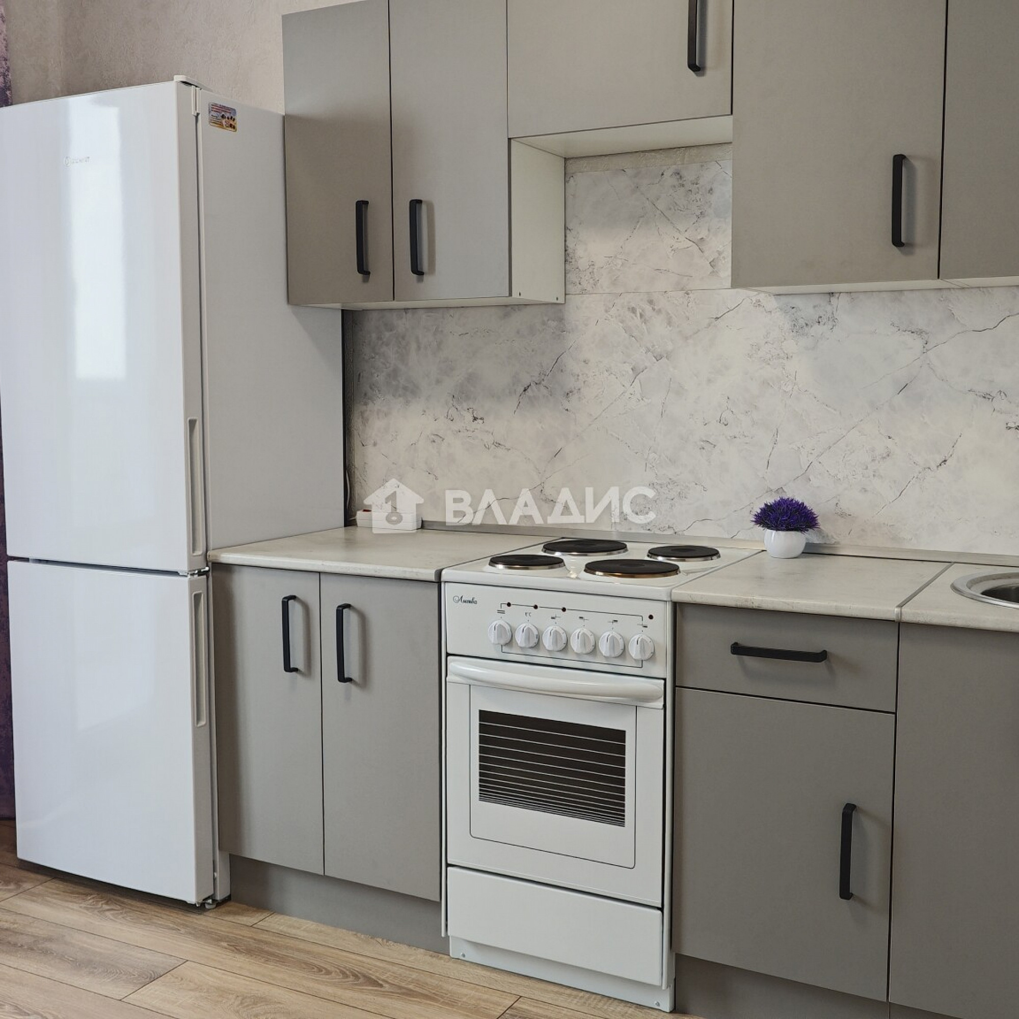 - Новая кухня с встроенной техникой: холодильник, плита, микроволновая печь.