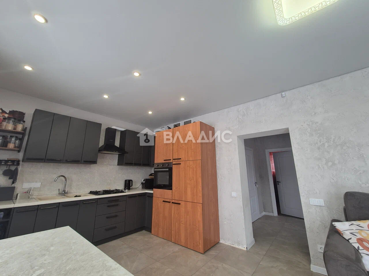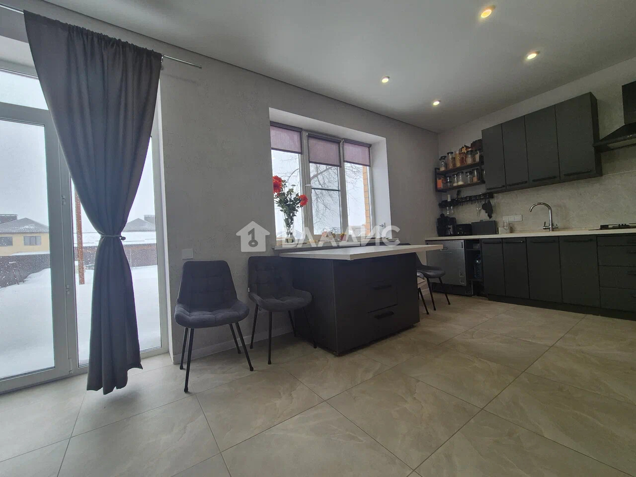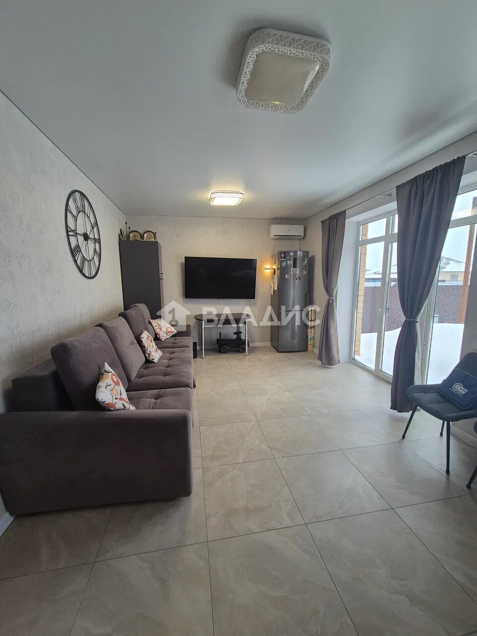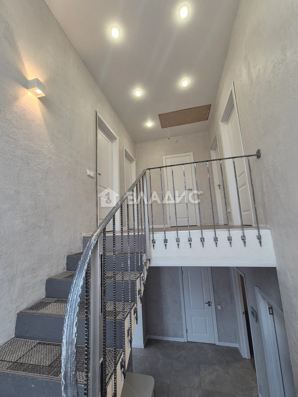 Дом с дизайнерским ремонтом: натяжные потолки, установлены межкомнатные двери, на полу в общих помещениях керамогранит, в спальнях - ламинат, санузлы в дорогой качественной плитке.