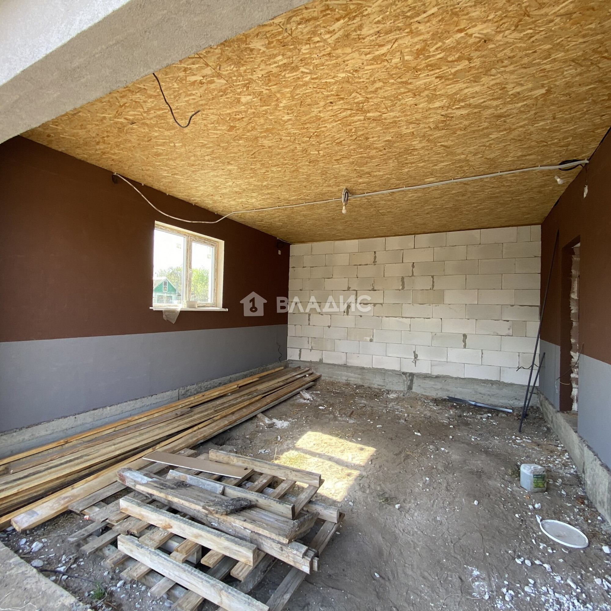 Кирпичный одноэтажный дом площадью 179 м2 с жилой площадью 49 м2, кухней 63 м2. Высота потолков — 3,2 метра. В доме три комнаты площадью 13,5, 17 и 18,5 м2. Гараж (5,5 м * 6,5 м)