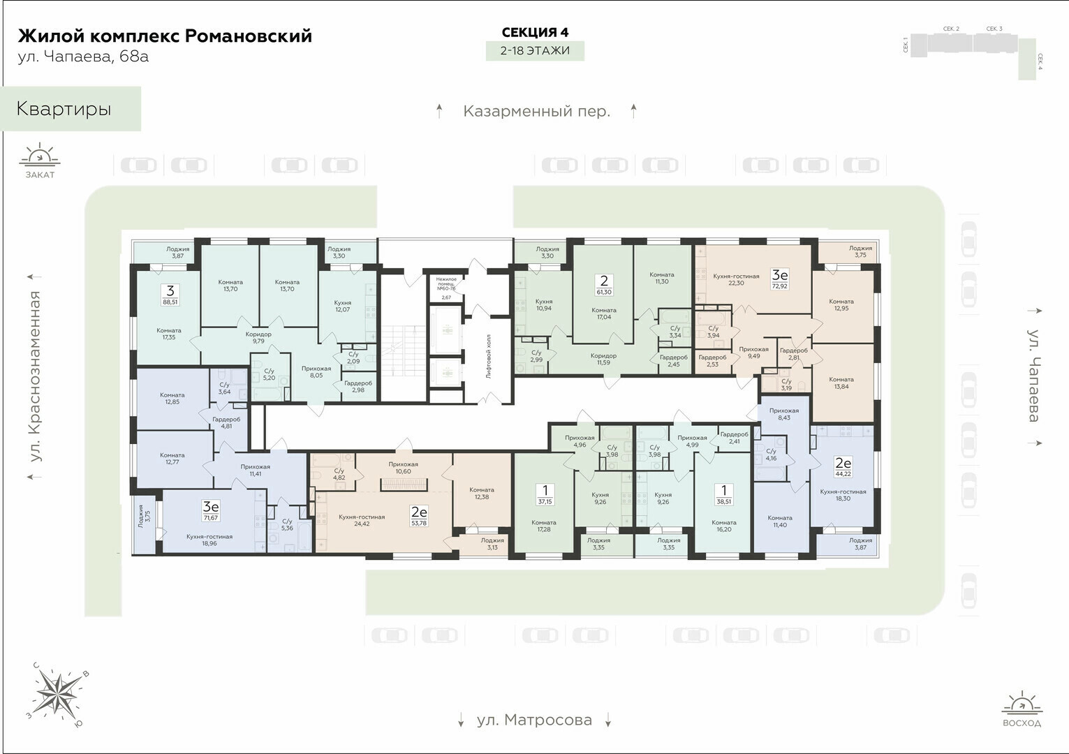 «Романовский» современный жилой комплекс класса комфорт+ в 10 минутах пути от центра Воронежа, на улице Чапаева.