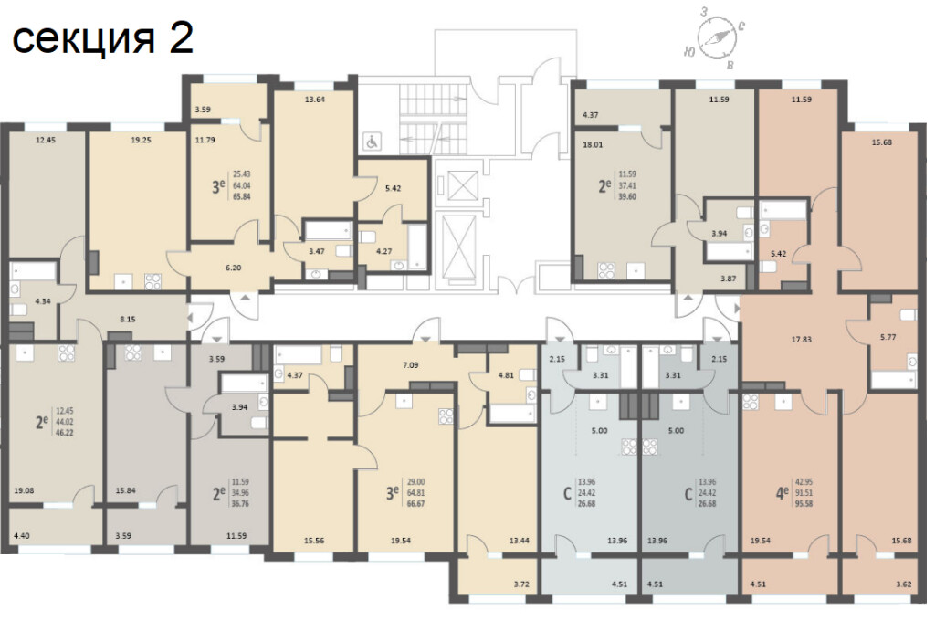 2-Комнатная квартира 62.90м², эт. 11, id: 875282