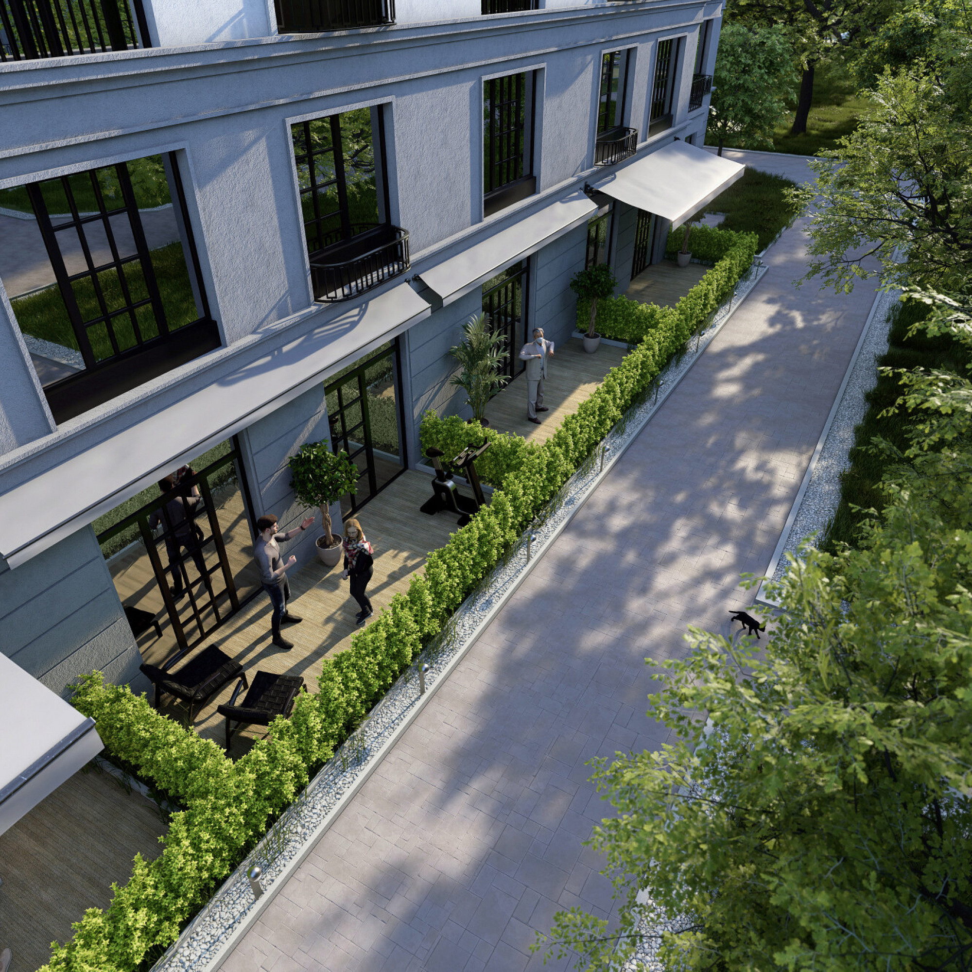 Комплекс реализует концепцию «закрытого двора»: