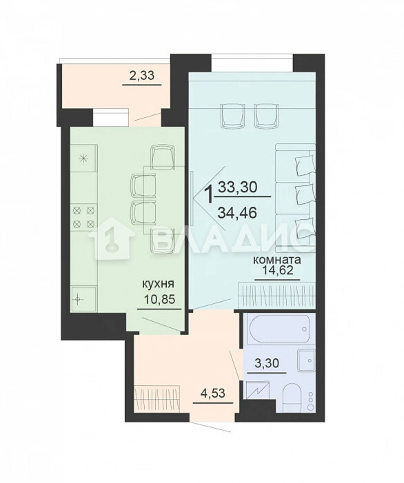 1-Комнатная квартира 34.46м², эт. 19