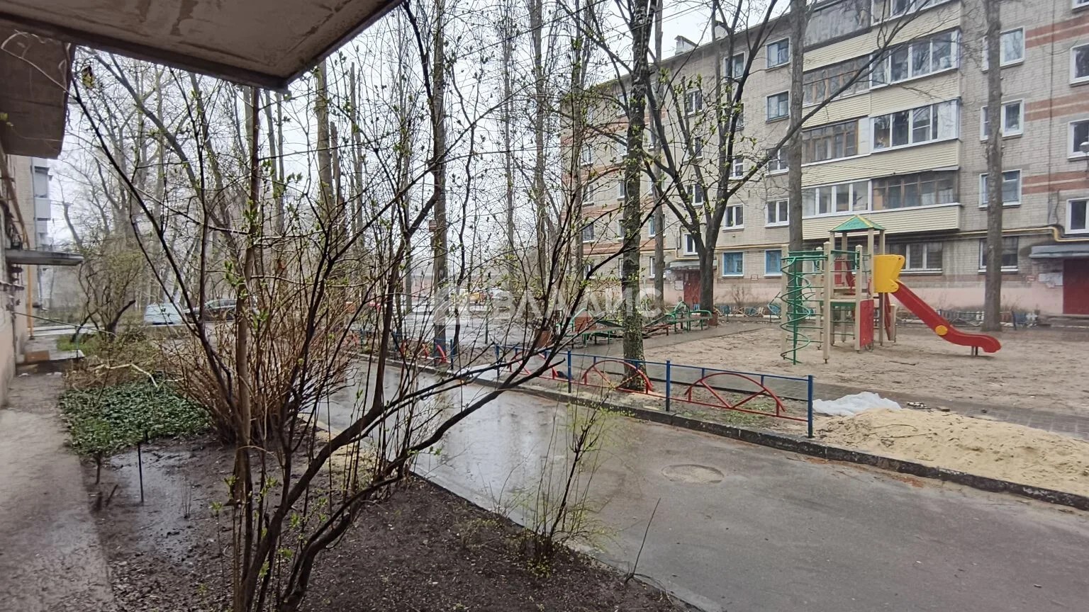 Двор без машин, с детской площадкой.