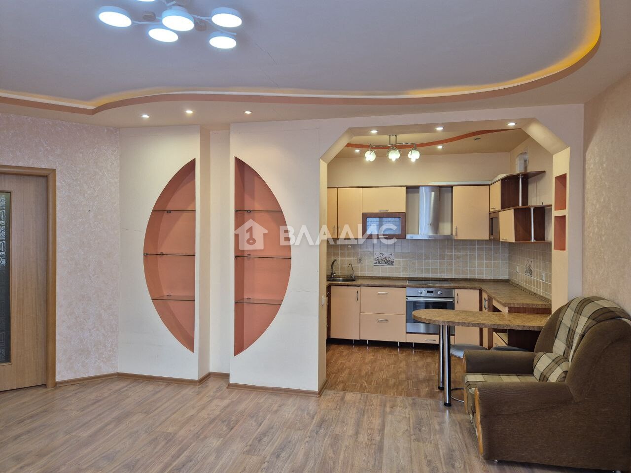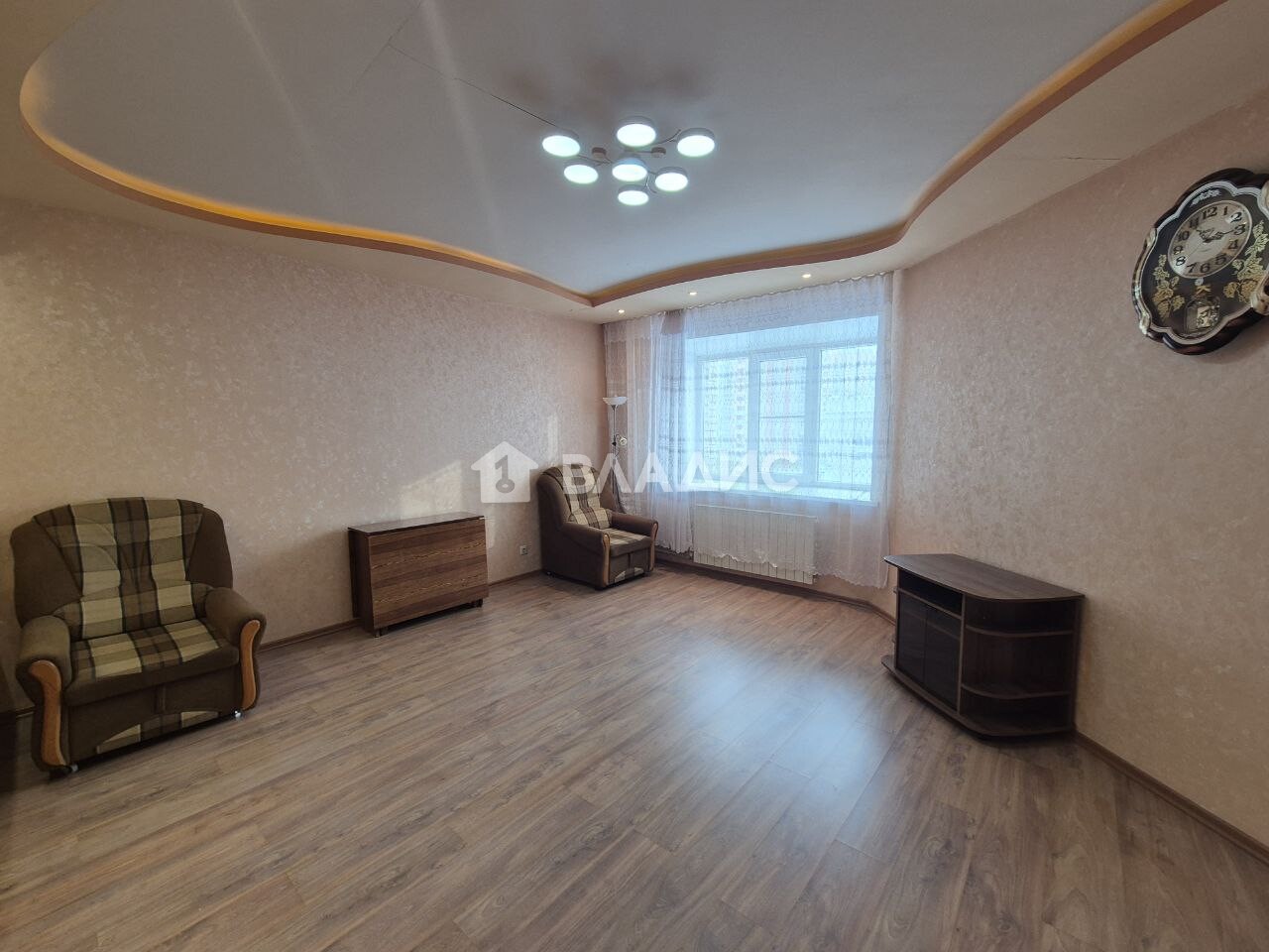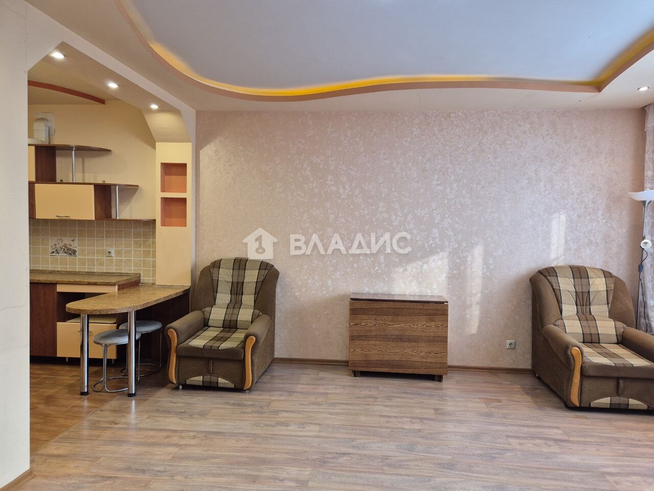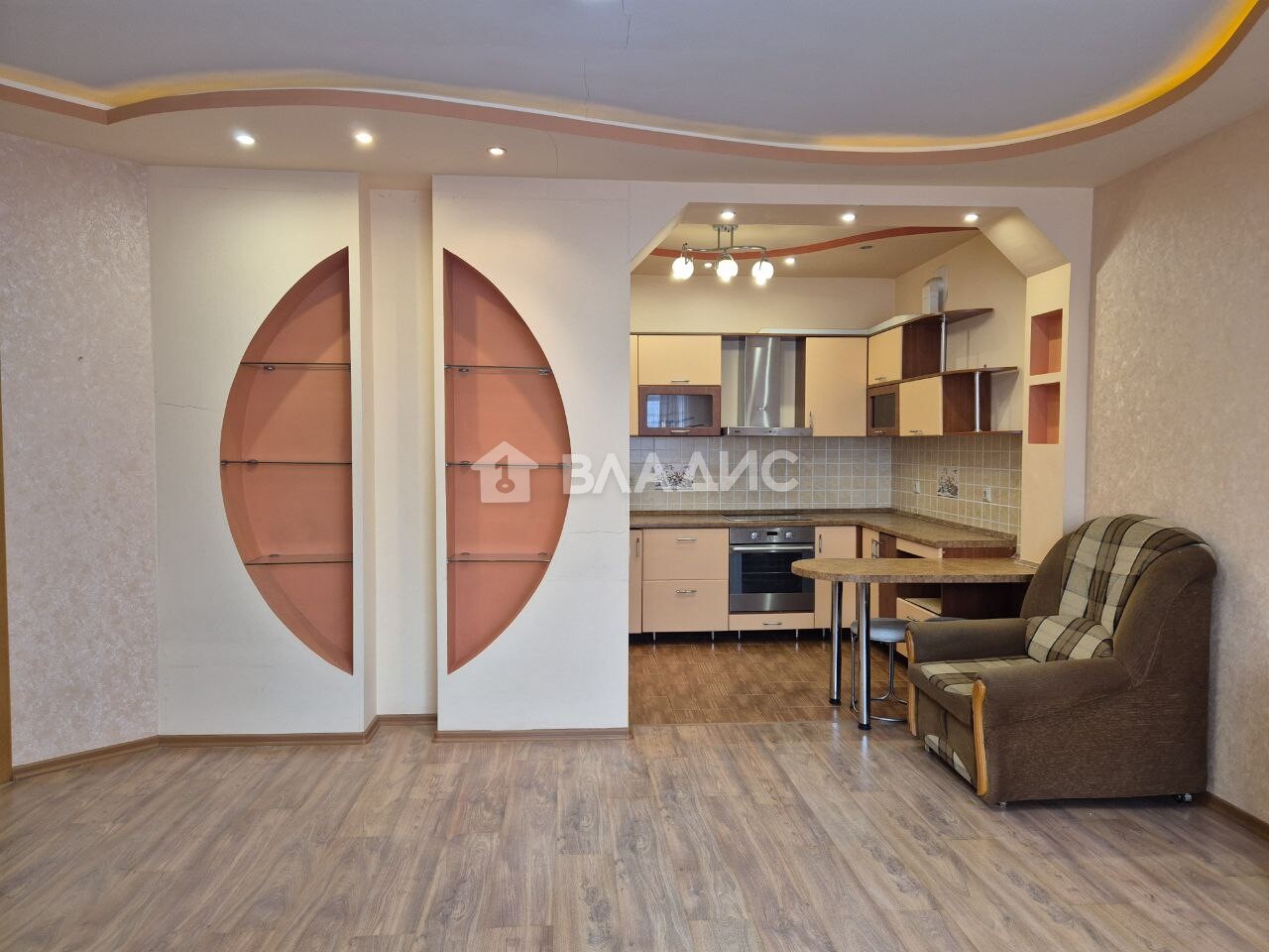 Комната 21 м2, гардеробная, кухня-столовая 25 м2, санузел совмещенный, большая лоджия.