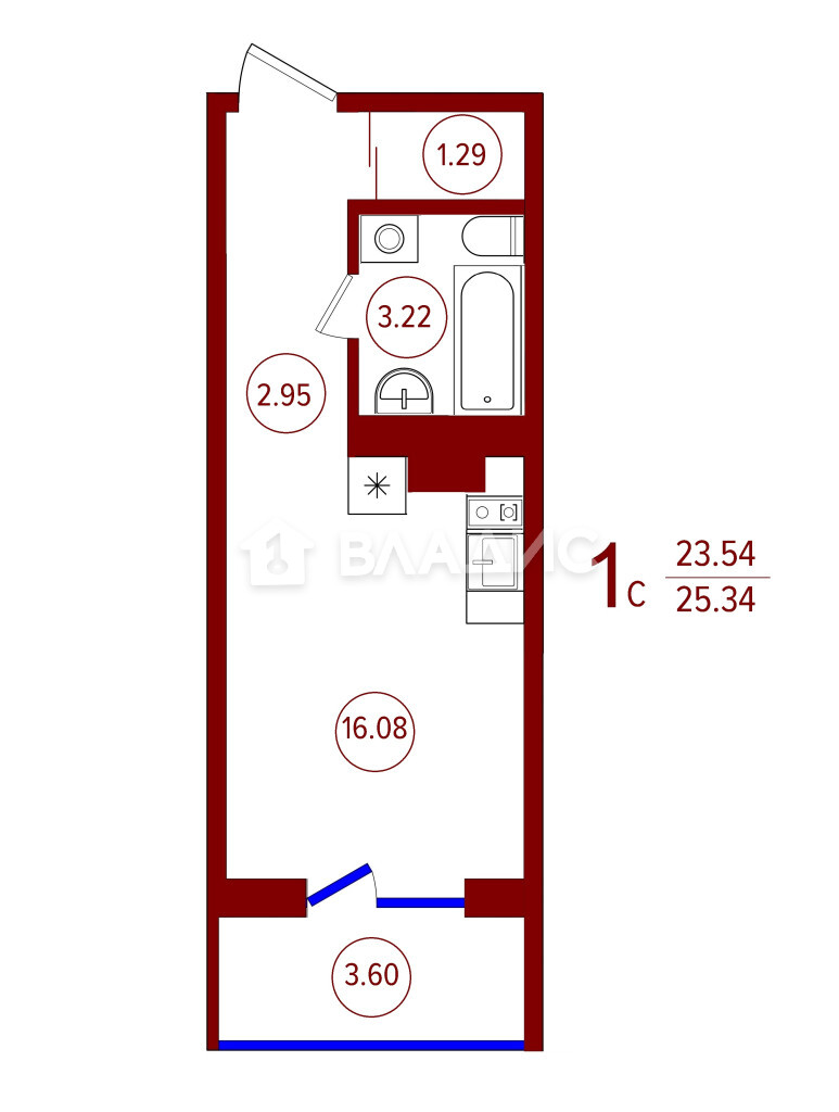 Общая площадь квартиры — 23,2 кв. м, жилая — 16,08 кв. м. Есть балкон и раздельный санузел. Квартира без отделки, что позволит новым владельцам воплотить свои дизайнерские идеи и создать уникальное пространство под себя.